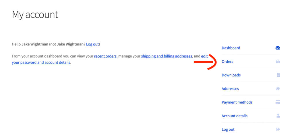- Click on Orders link on right hand side